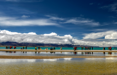 早餐后乘車延青藏線西行轉(zhuǎn)北赴西藏三大圣湖之一的【納木措】(游覽時(shí)間1小時(shí))——海拔4718米,它是世界上海拔最高的咸水湖,它位于唐古拉山脈西南腳下,有如鑲嵌在藏北草原上一顆無(wú)暇的翡翠。湖的盡頭是白雪皚皚連錦的雪山,和藍(lán)天下茵茵草地,朵朵羊群以及帳篷里飄出的裊裊欽煙,象是到了遠(yuǎn)離城市喧器的仙境。之后返回拉薩。